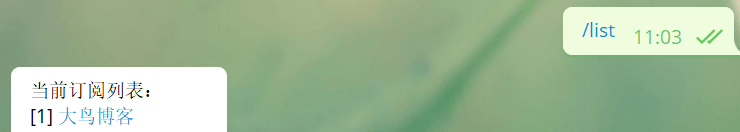 输入命令‘/list’则可以看到你订阅的列表,如图: