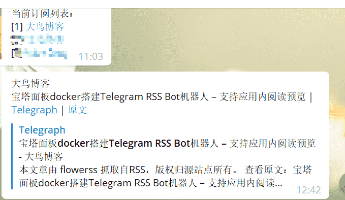 用telegram订阅博客非常方便,遗憾的是这个工具,并支持全文阅读,不知道有没有插件可以支持的。