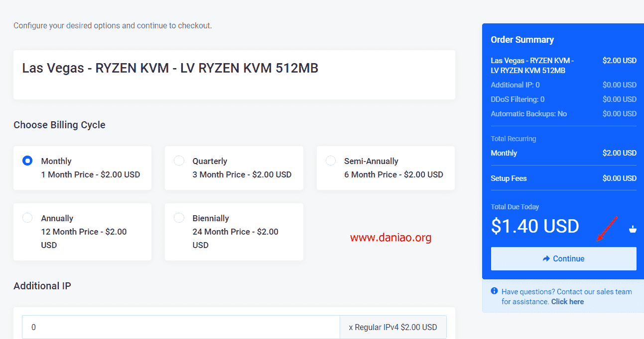 额,登录后台购买vps,大鸟这里以512M 10G SSD为例,这是最低配,2刀每月,不过用支付宝付款,是加元结算,会便宜不少。