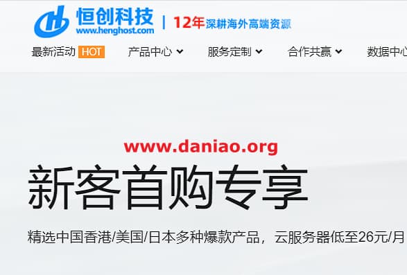 henghost(恒创科技):新客首购促销,云服务器月付低至26元,可选中国香港/美国/日本